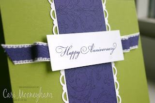 This is one of the first cards I have made since last summer. After I got pregnant last fall, I experienced some pretty severe morning sickness (such a misnomer!!), plus I was tired and working full time. Then my little sister got engaged so we started working on her invitations, programs, menus, etc. Hence the reasons why I have not stamped a card in almost a year! Anyway, when it's been a while since I've created something, I usually have to start by copying something almost exactly. I had just received my copy of the new 2011-2012 Idea Book & Catalog, so I started flipping through it. I found this card on page 142 and knew it would be perfect! By the way, you'll probably see at some point soon a rendition of the other card from this page as I really like it too :)